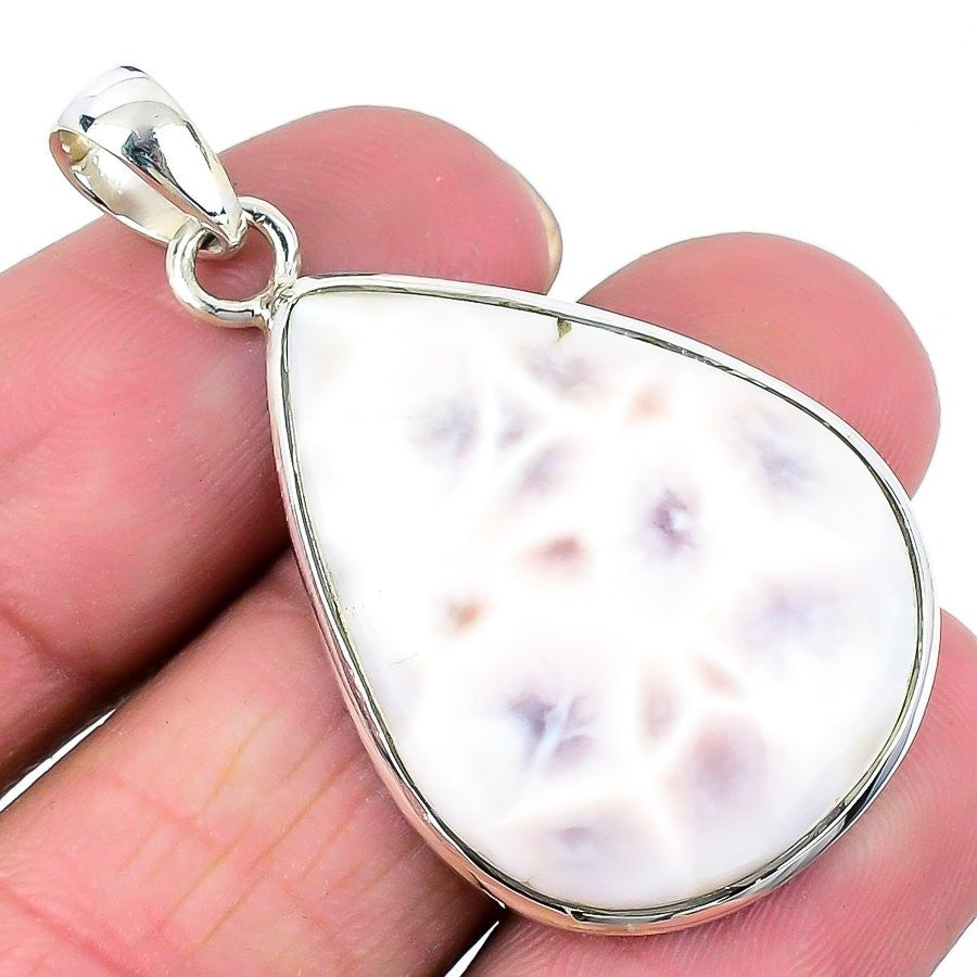 Pink Larimar Gemstone Wedding Art Deco Unique Boho Pendant Solid Sterling Silver