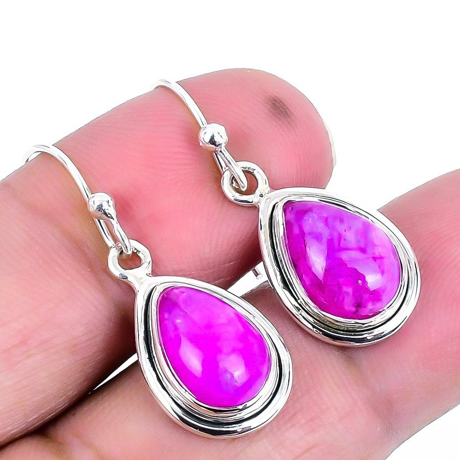 Pink Moonstone Gemstone 925 Sterling Silver New Handmade Dangling Wife Earrings