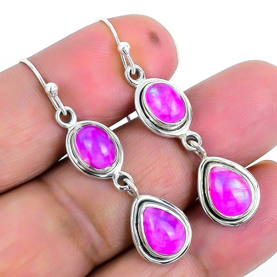 Pink Moonstone Stone June Elegant Dangle Sister Earrings Jewelry Sterling Silver