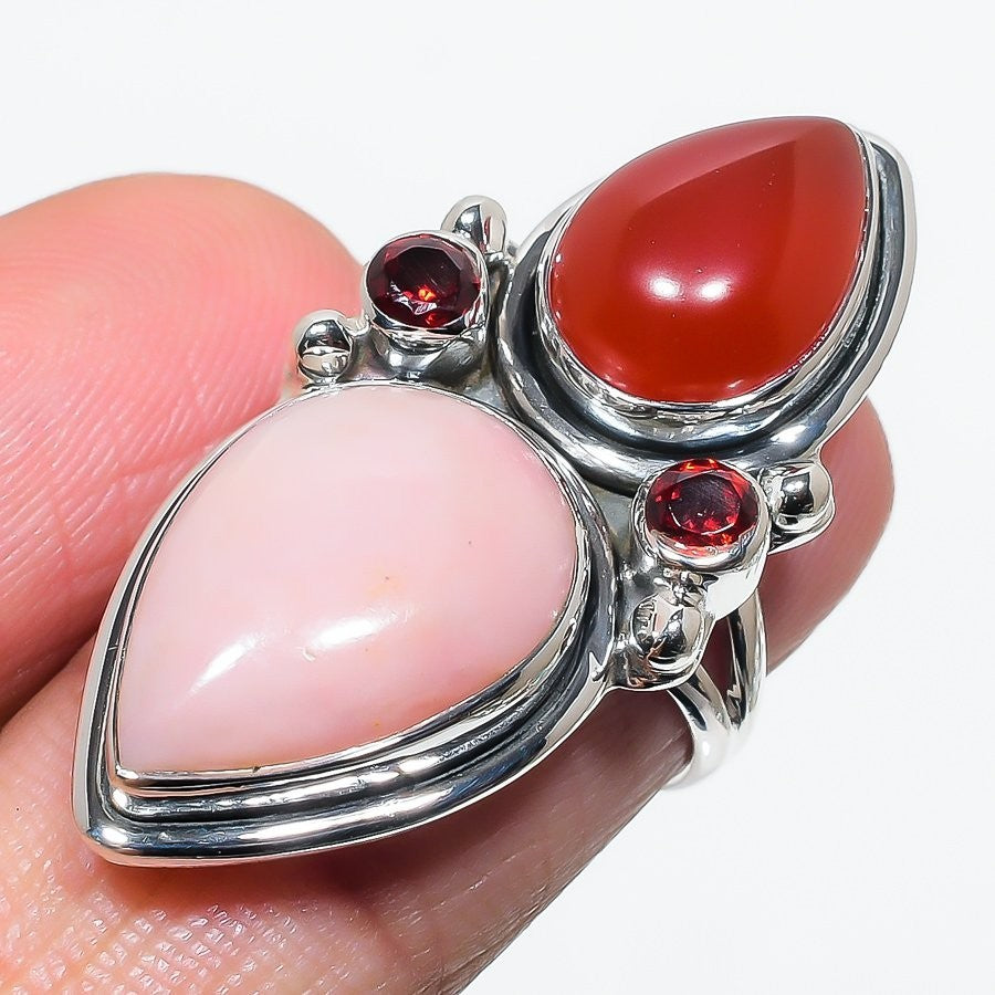 Pink Opal Gemstone Solid Sterling Silver Trendy Boho Cluster Unique Ring Size 6
