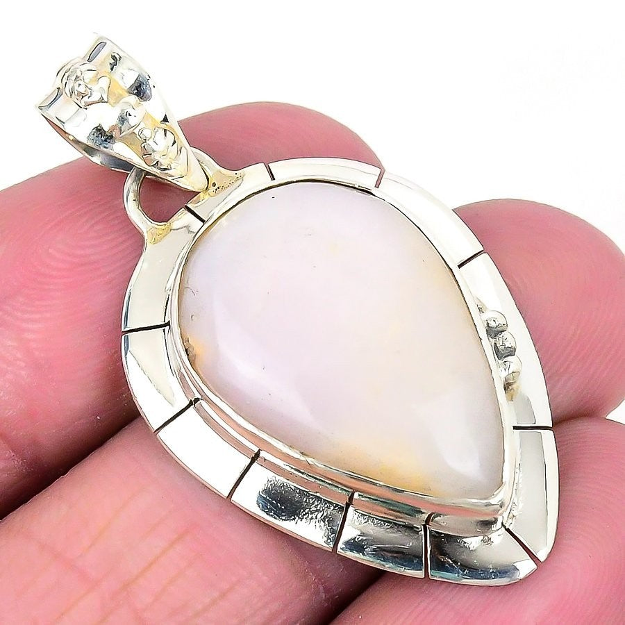 Pink Opal Gemstone Sterling Silver Engagement Birthday Boho Ethnic Wife Pendant