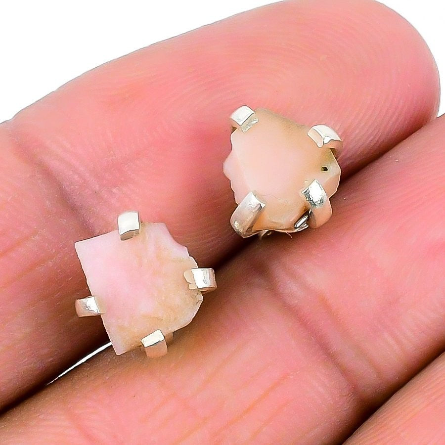 Pink Opal Stone Solid Sterling Silver Engagement Unique Drop Push Back Earrings