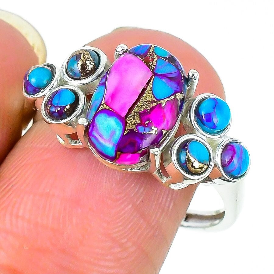Pink Oyster Turquoise Gemstone 925 Solid Silver Statement Ring Jewelry Size 10