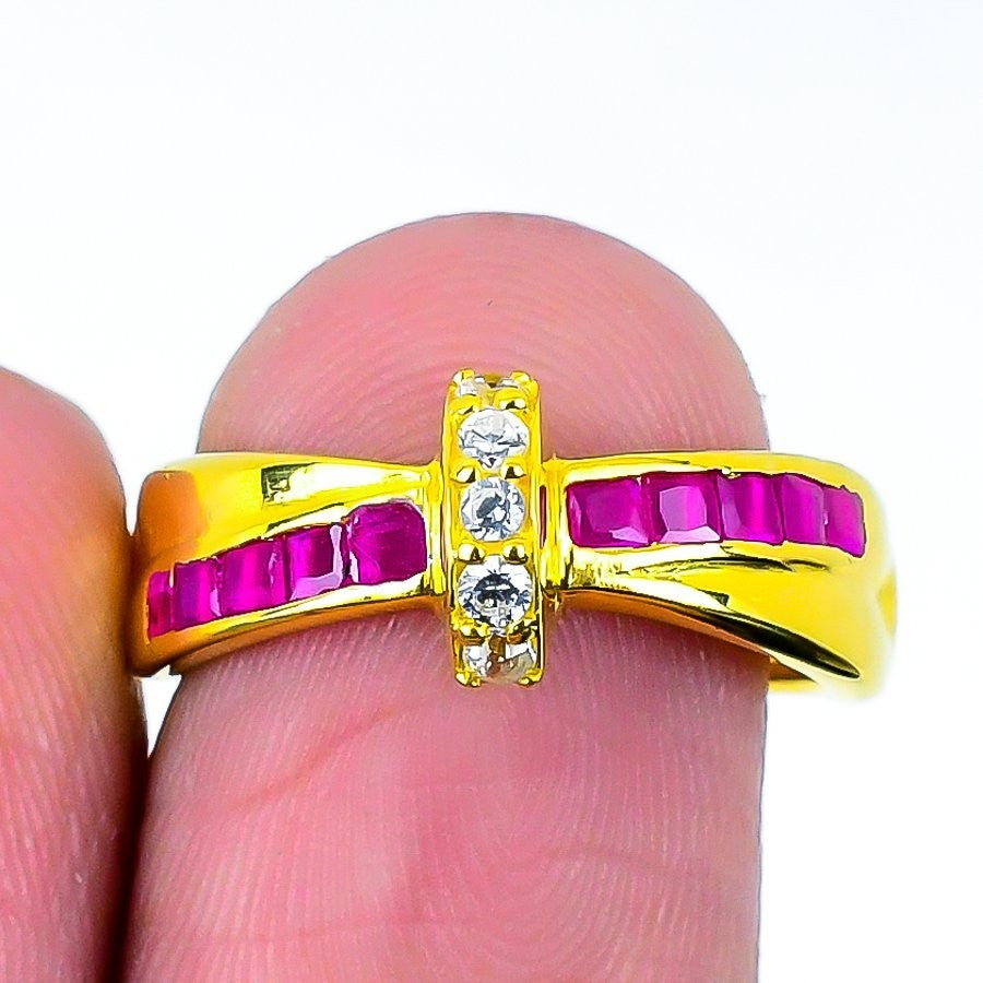 Pink Rubillite Stone Solid Sterling Silver Ethnic New Band Promise Ring Size 7.5