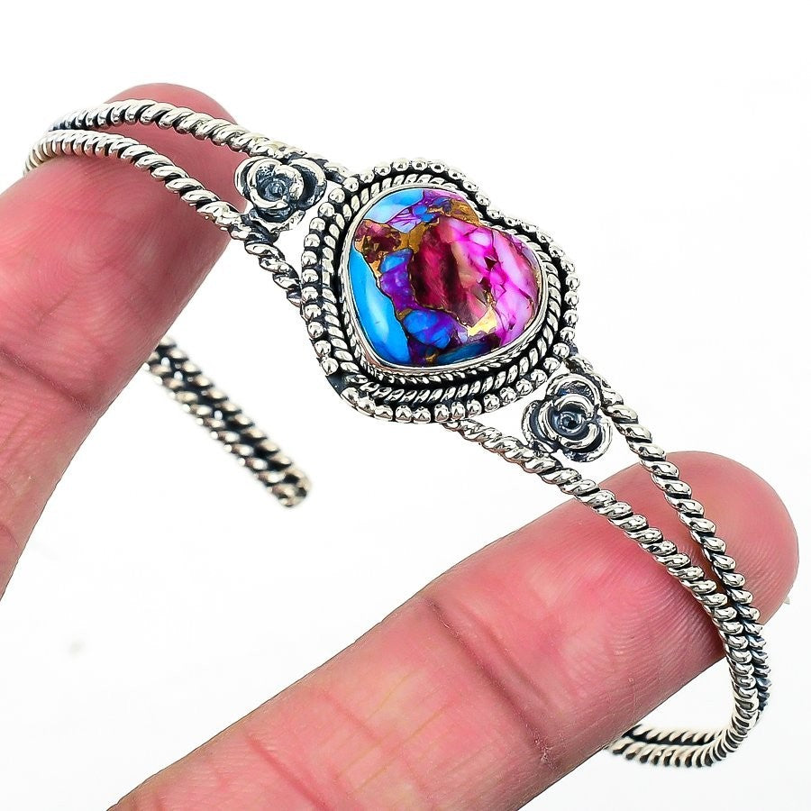 Pink Spiny Oyster Gemstone Handmade Daughter Gift New Cuff Jewelry Solid Silver
