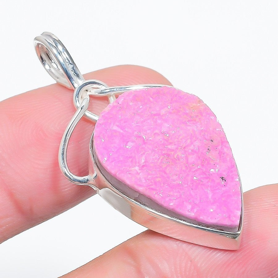Pink Titanium Druzy Gemstone Engagement Unique Handmade Pendant 925 Solid Silver