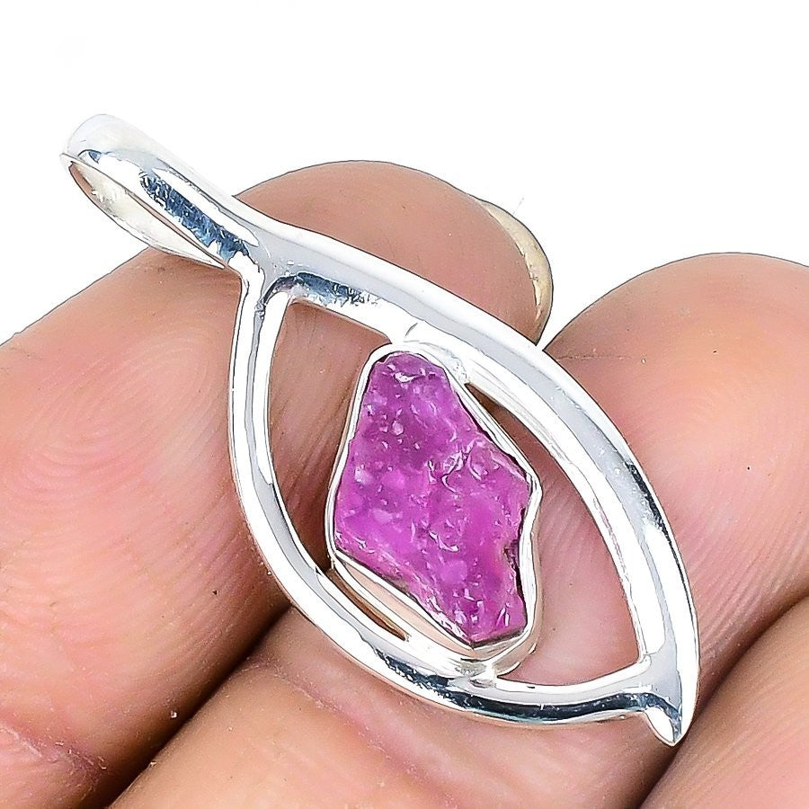 Pink Tourmaline Druzy Gemstone Solid Silver Daughter Handmade Pendant Jewelry