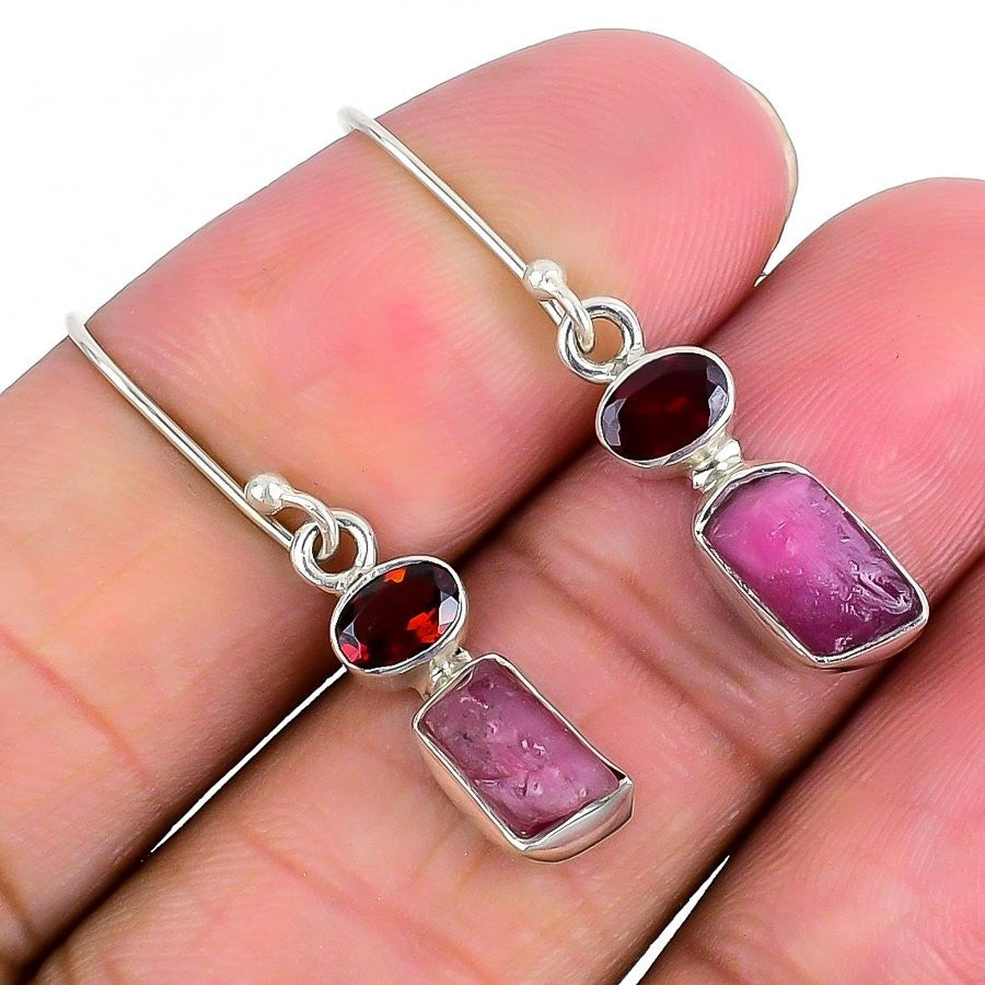 Pink Tourmaline Druzy Stone 925 Sterling Silver Dangle Drop New Earrings Jewelry