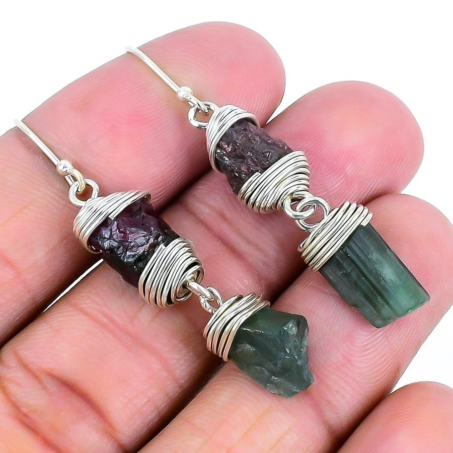 Elegant Pink Tourmaline Gemstone 925 Silver Artisan Dangle i