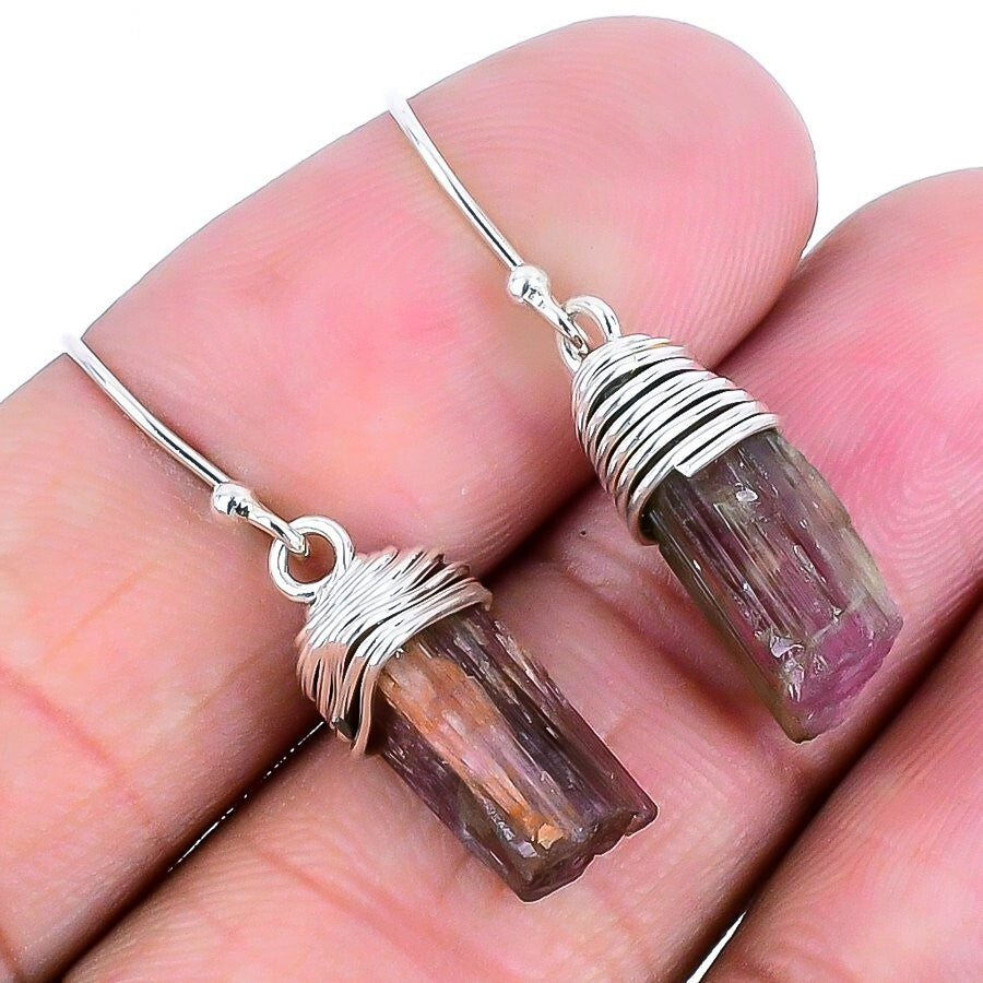 Pink Tourmaline Gemstone 925 Silver Drop Dangle Daughter Hook Earrings Jewelry