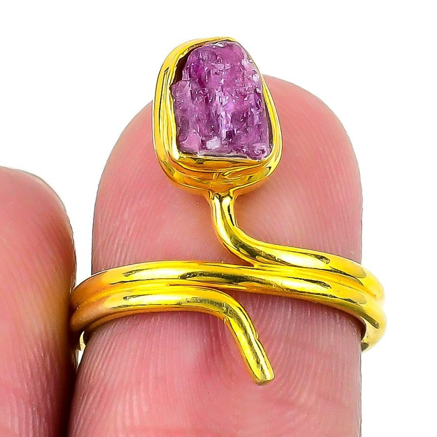 Pink Tourmaline Gemstone 925 Silver Gold Vermeil Statement Ring Jewelry US 6.5