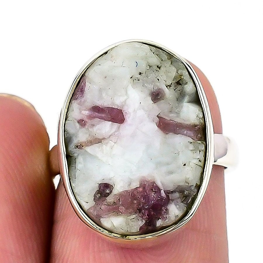 Pink Tourmaline Gemstone 925 Solid Silver Ethnic Handmade Statement Ring US 5.5
