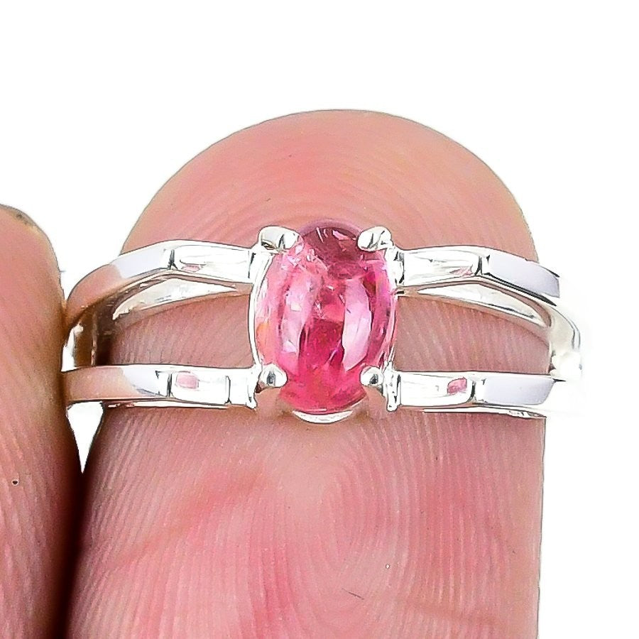Pink Tourmaline Gemstone 925�Solid�Silver Trendy Statement Ring Jewelry Size 5.5