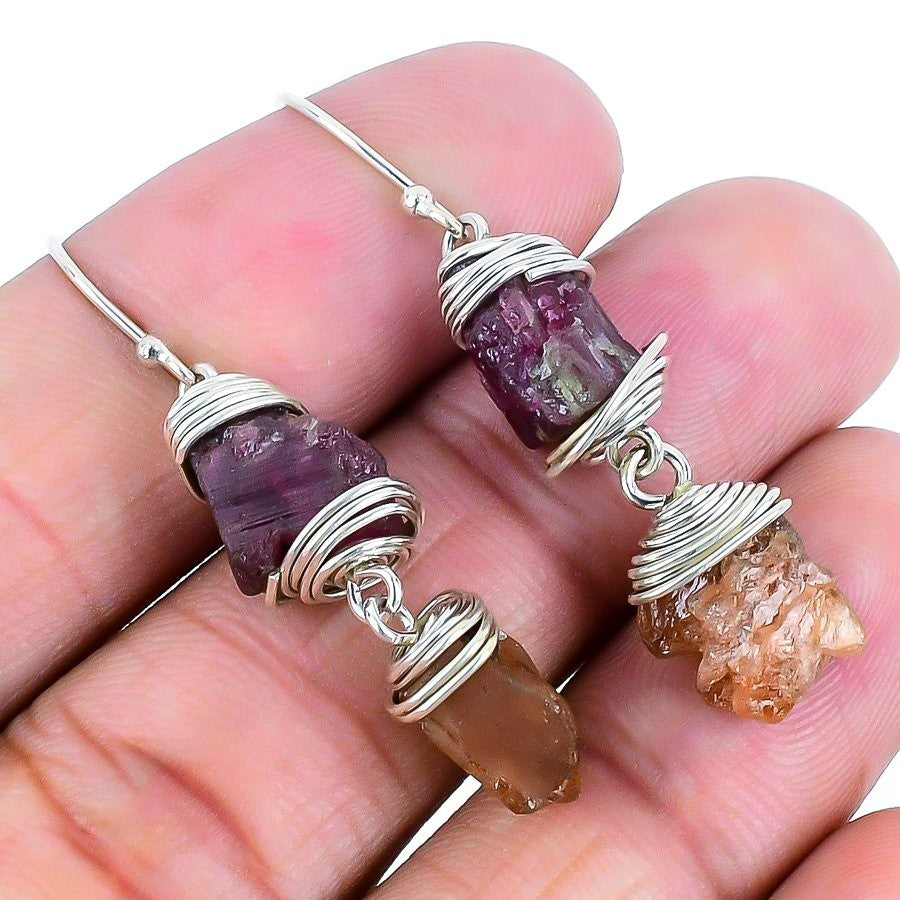 Pink Tourmaline Stone 925 Solid Silver Dangle Drop Sister Engagement Earrings