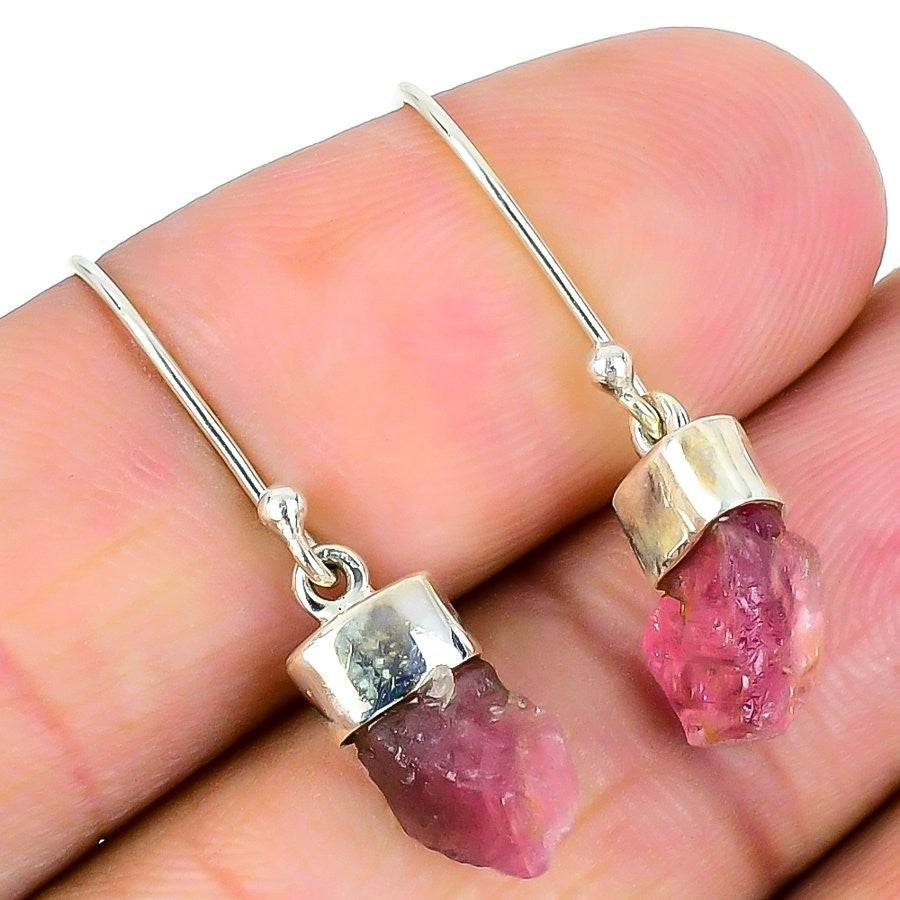 Elegant Pink Tourmaline Stone 925�Solid�Silver Hook Drop Fri