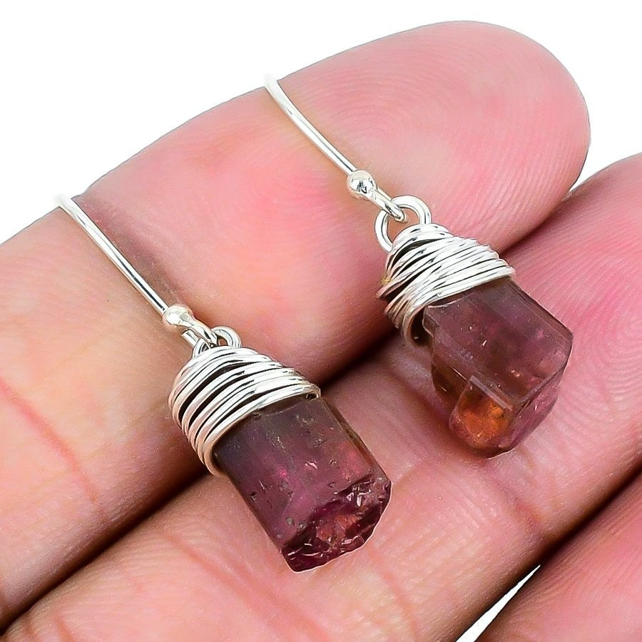 Pink Tourmaline Stone 925 Sterling Silver Dangle Drop Anniversary Hook Earrings