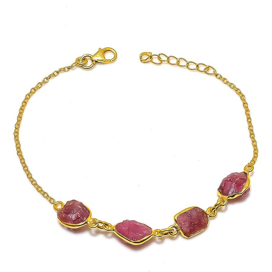 Pink Tourmaline Stone 925 Sterling Silver Gold Vermeil Anniversary Cuff Bracelet