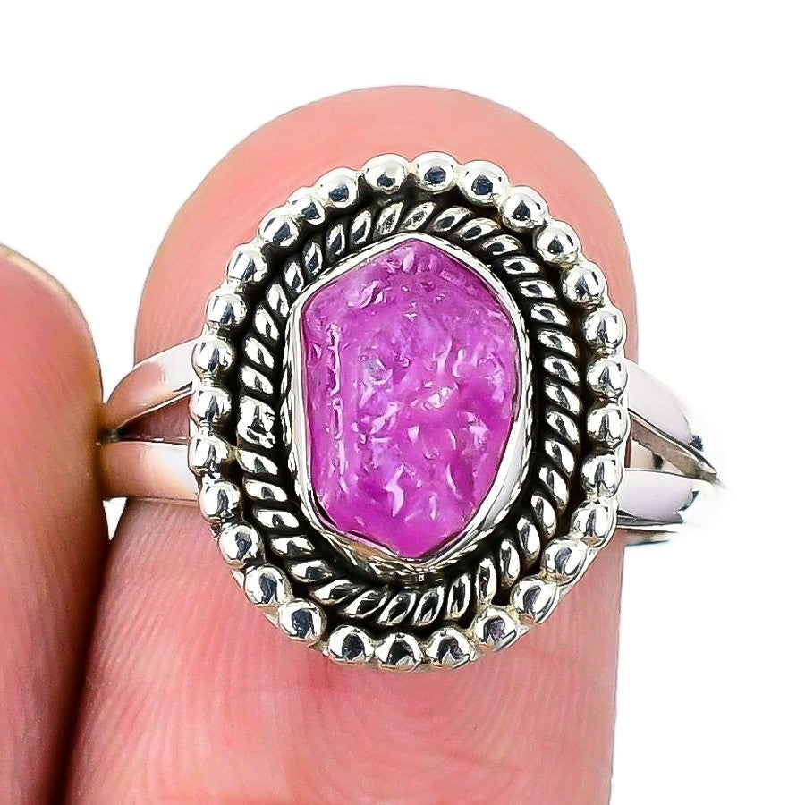 Pink Tourmaline Stone Solid Sterling Silver Statement Daughter Gift Ring US 8
