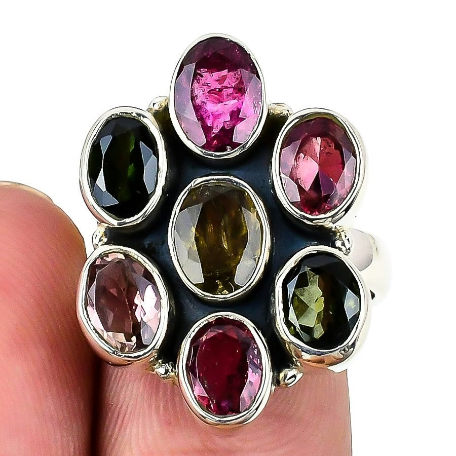 Pink Tourmaline Stone Statement Heart Chakra Ring Jewelry Sterling Silver US 7.5
