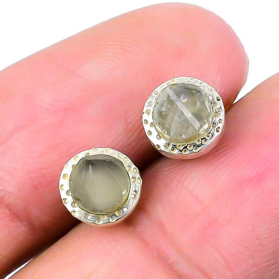 Prehnite Gemstone 925 Solid Silver Wedding Elegant Stud Artisan Earrings Jewelry