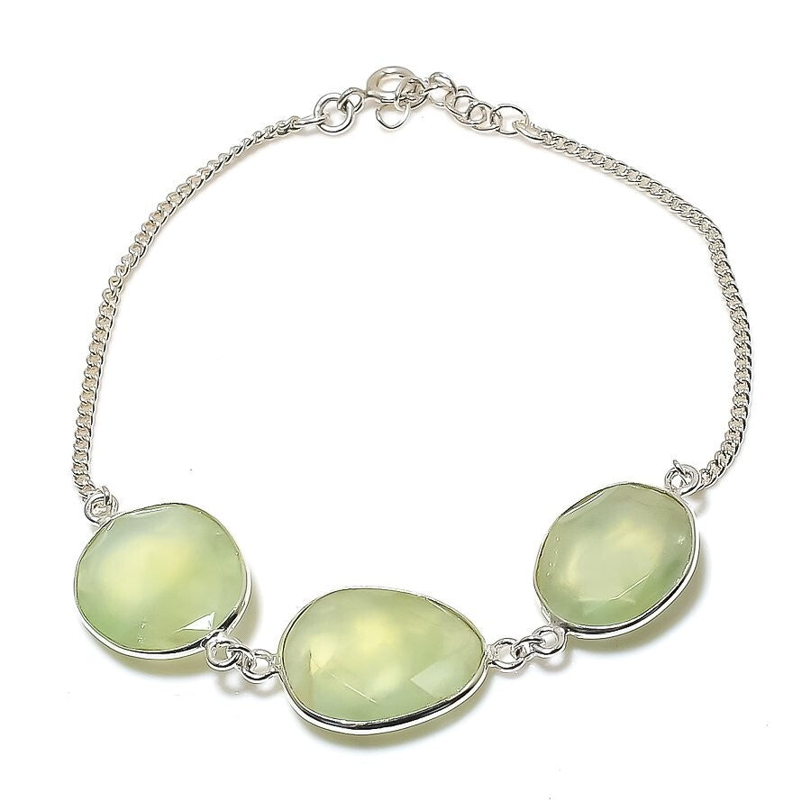 Prehnite Gemstone Sterling Silver Engagement Chain Artisan Wife Bracelet Jewelry