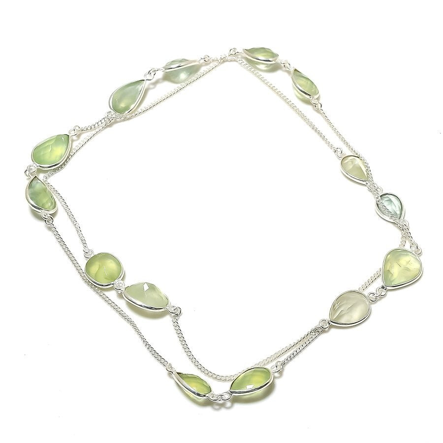 Prehnite Stone 925 Silver Bezel Mother Anniversary Chain Trendy Necklace Jewelry