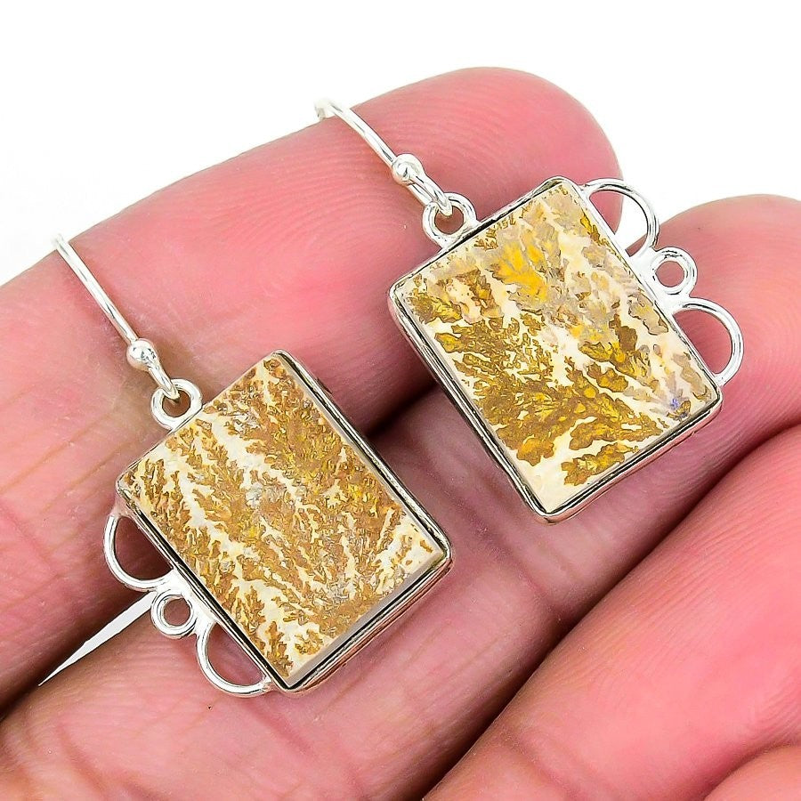Psilomelaine Dendritic Gemstone Mother Drop Boho Earrings Solid Sterling Silver