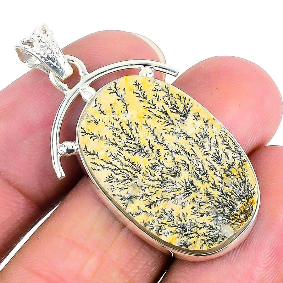 Psilomelaine Dendritic Stone Bezel Engagement Pendant Jewelry Sterling Silver
