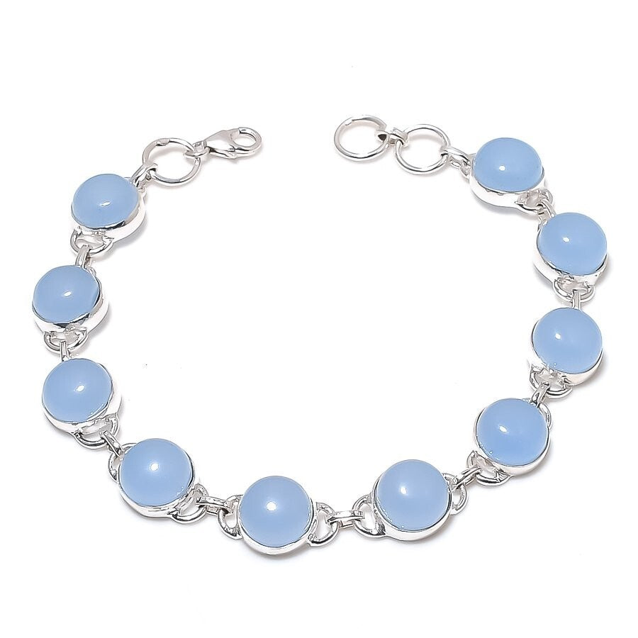 Purple Chalcedony Gemstone 925 Silver Sister Chain Art Deco Handmade Bracelet