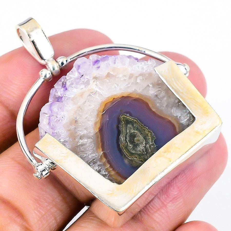 Purple Solar Quartz Gemstone Engagement Pendant Jewelry Solid Sterling Silver