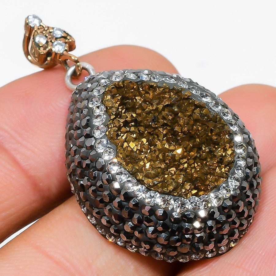Pyrite Agate Stone 925�Solid�Silver Sisters Day Daughter Elegant Pendant Jewelry