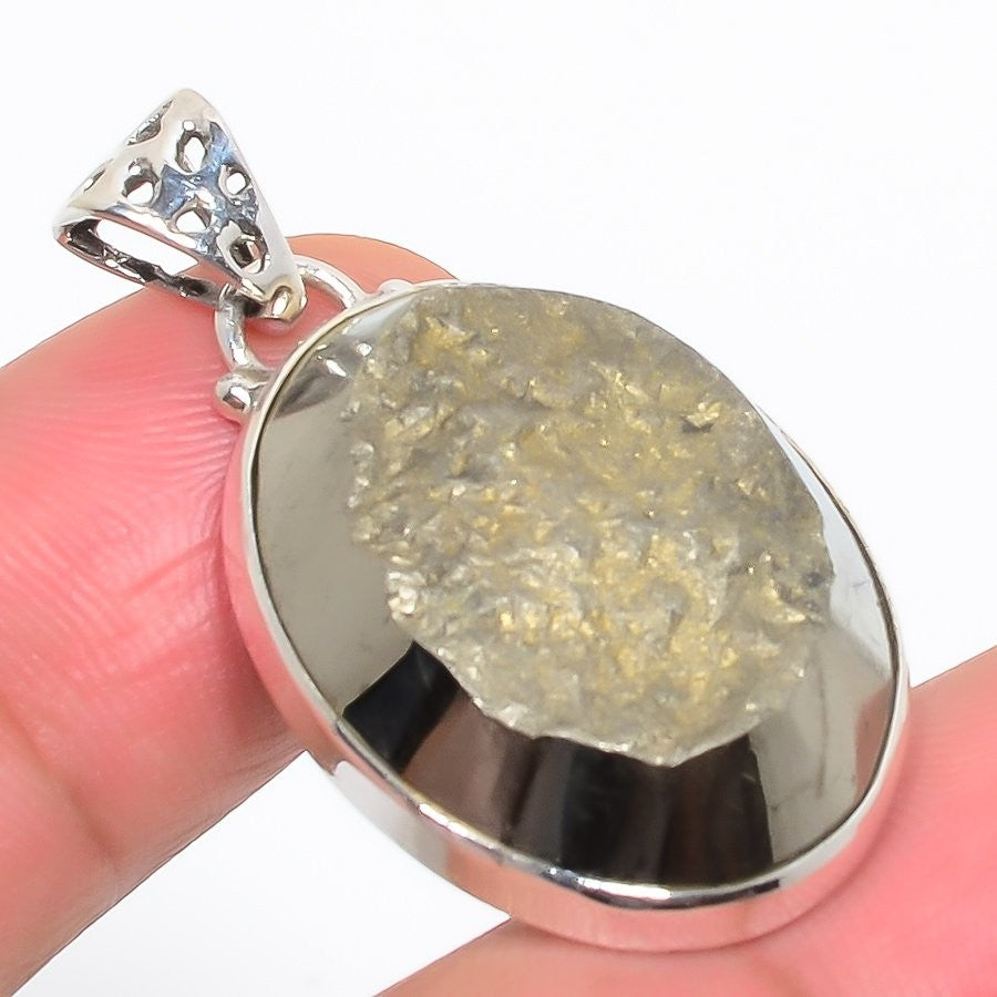Pyrite Druzy Gemstone 925 Silver Daughters Day Ethnic Mother New Pendant Jewelry