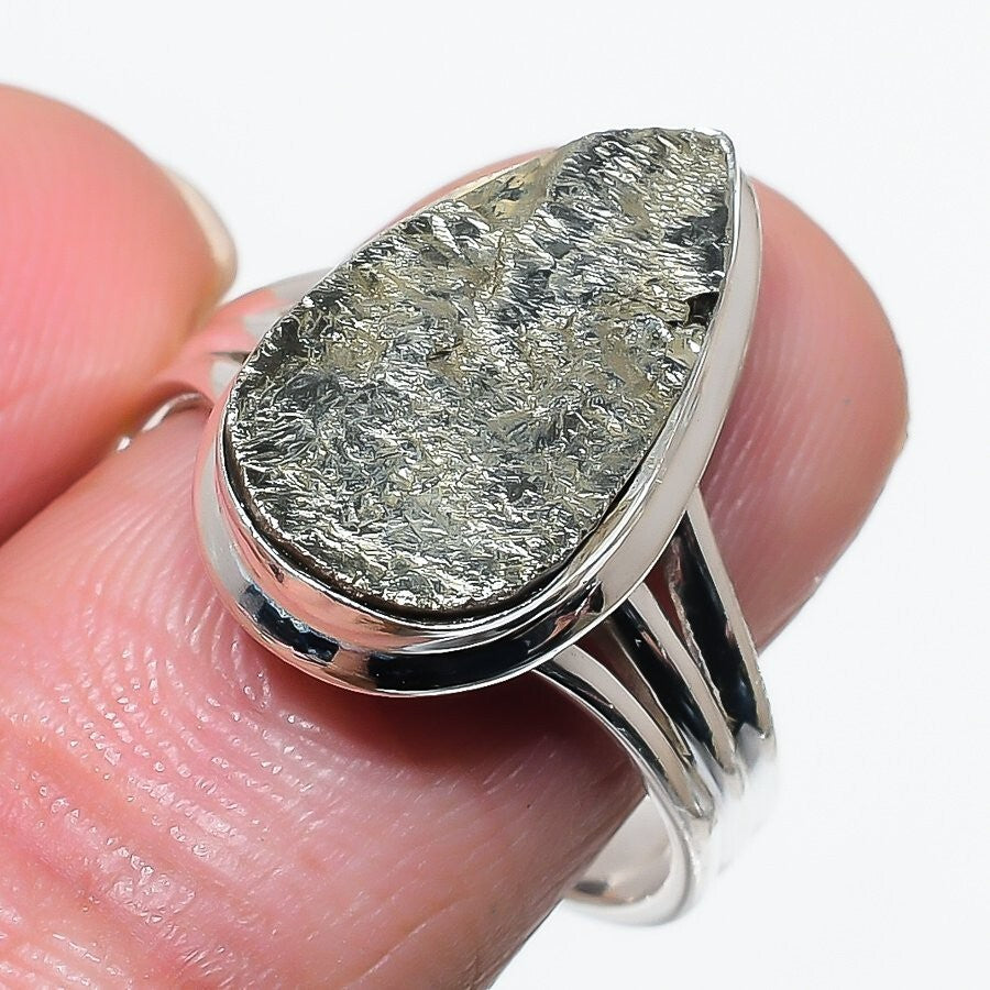 Elegant Pyrite Druzy Gemstone 925 Solid Silver Ethnic in 925