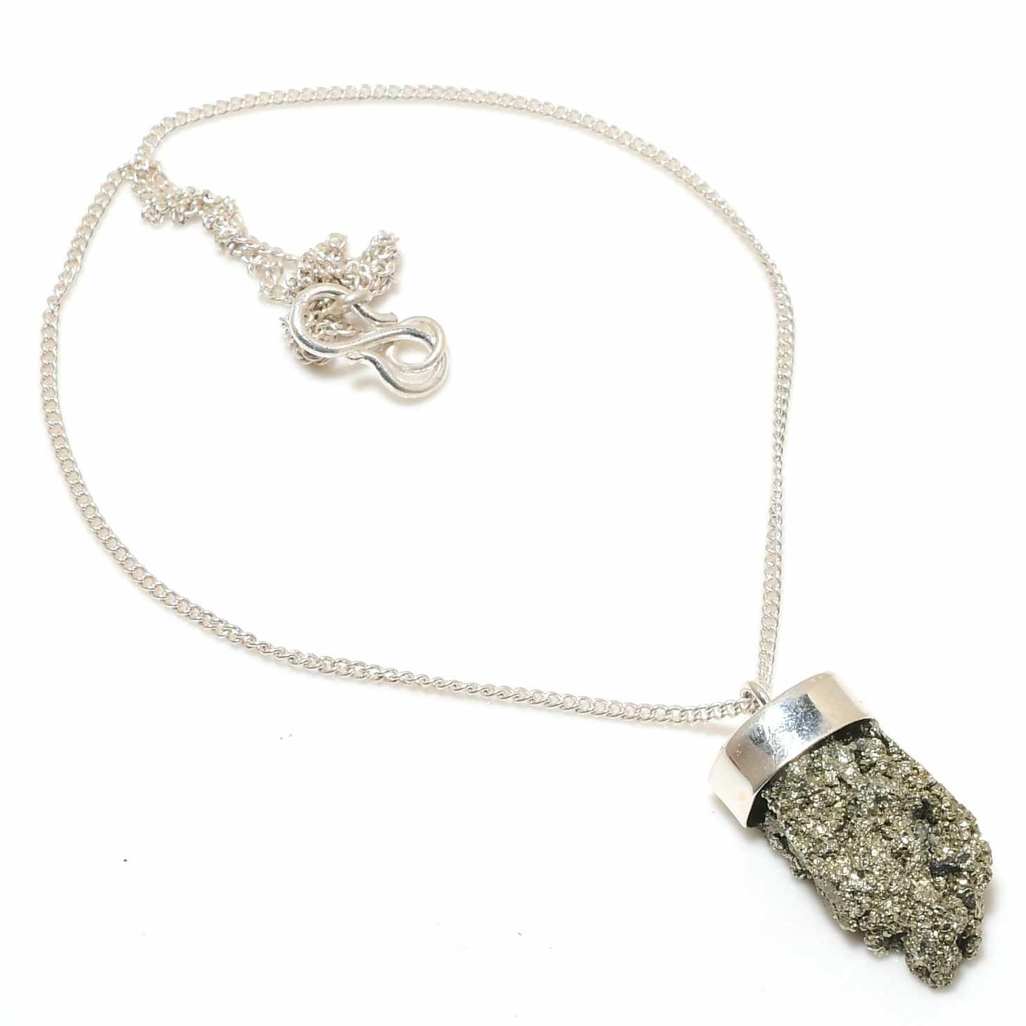 Pyrite Druzy Gemstone Chain Wife Artisan Elegant Necklace 925 Sterling Silver