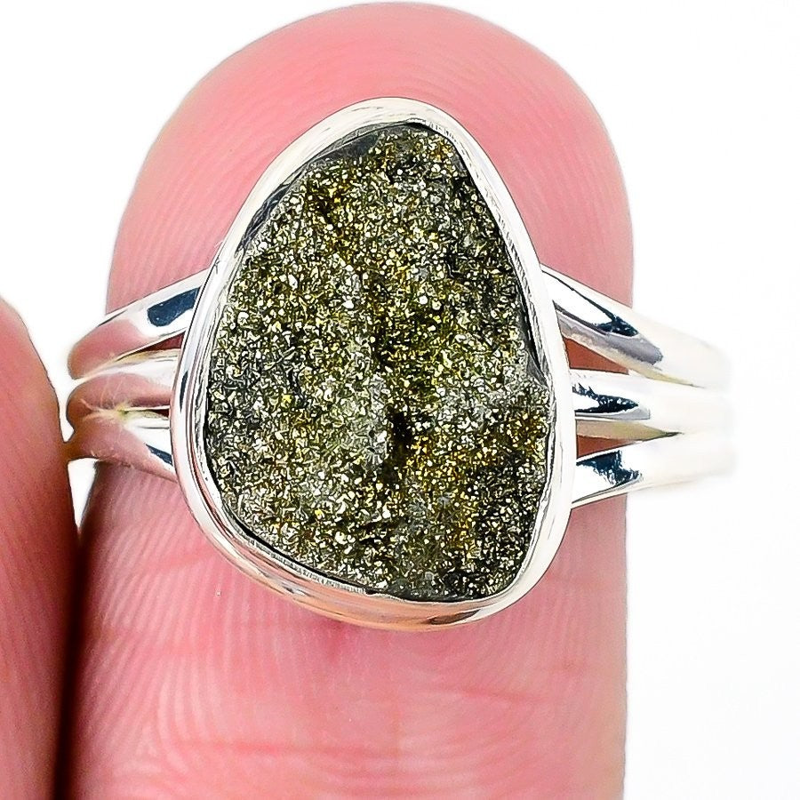 Pyrite Druzy Gemstone Solid Sterling Silver Anniversary New Cluster Ring Size 10