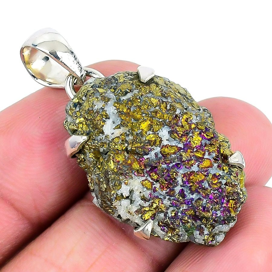 Pyrite Druzy Gemstone Solid Sterling Silver Engagement Wife Anniversary Pendant