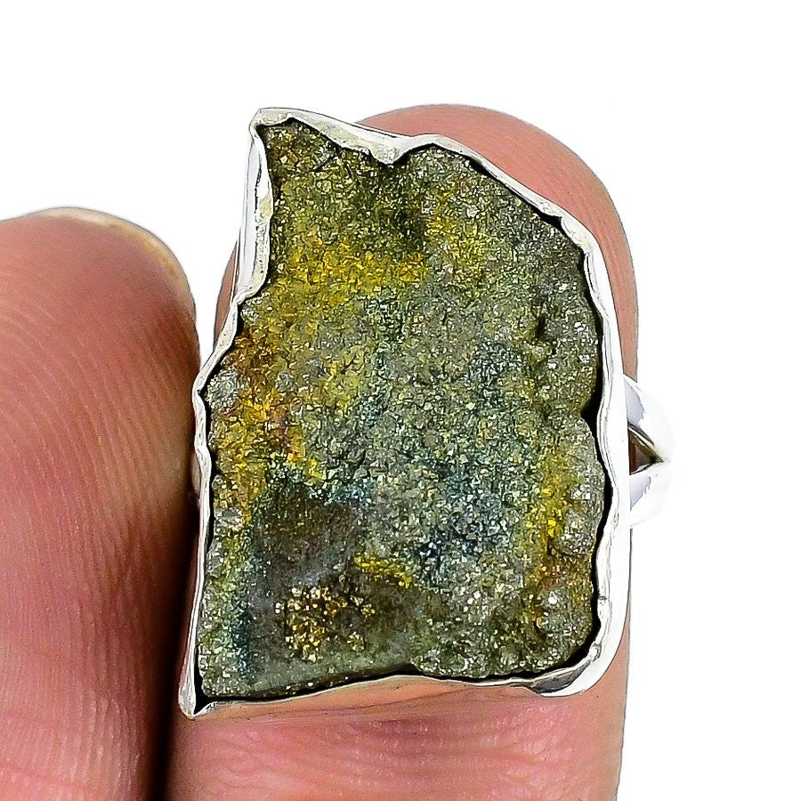 Pyrite Druzy Gemstone Statement Friend Gift Ring Jewelry 925 Solid Silver US 7