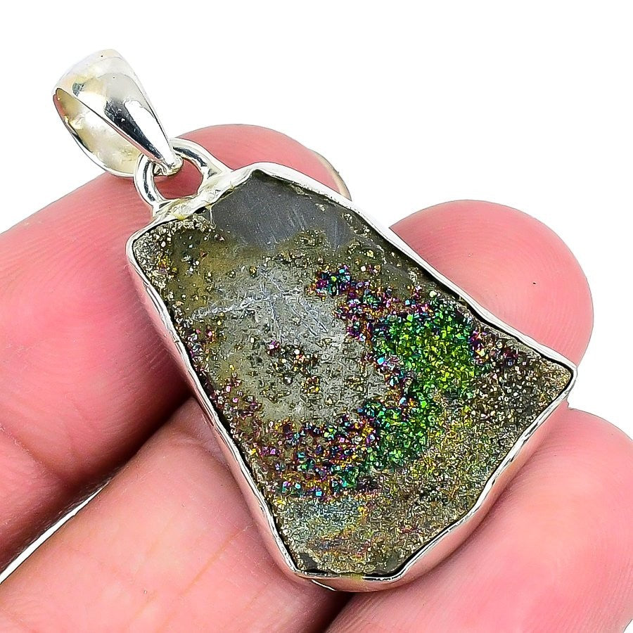 Pyrite Druzy Stone Daughter Trendy Boho Handmade Pendant Jewelry Solid Silver