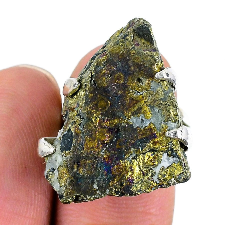 Pyrite Druzy Stone Solid Silver Bezel Statement Best Daughters Gift Ring US 7.5