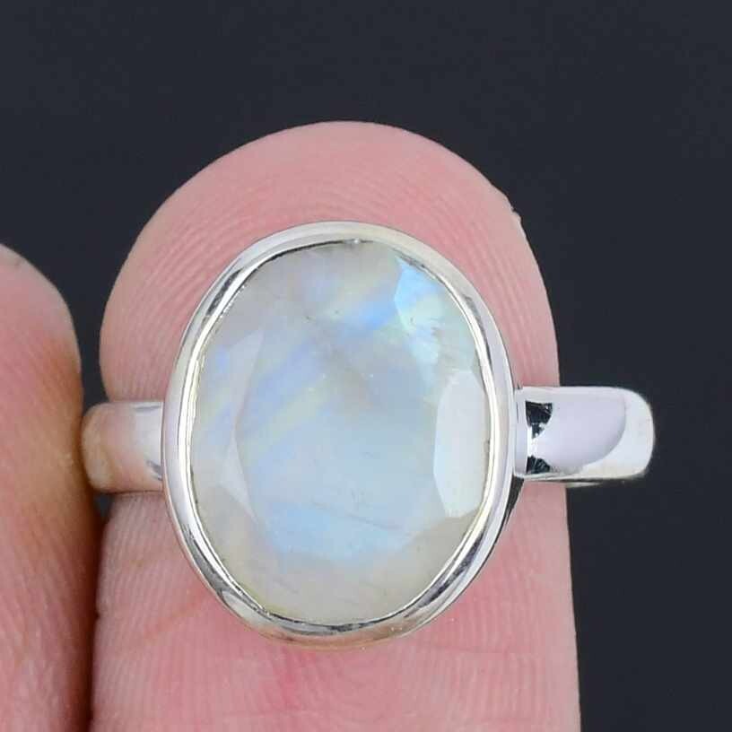 Rainbow Moonstone Faceted Gemstone 925 Sterling Silver Wife Cluster Ring Size 8