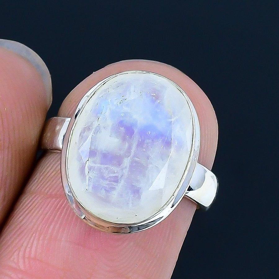 Rainbow Moonstone Faceted Stone 925 Solid Silver New Statement Ring Jewelry US 6