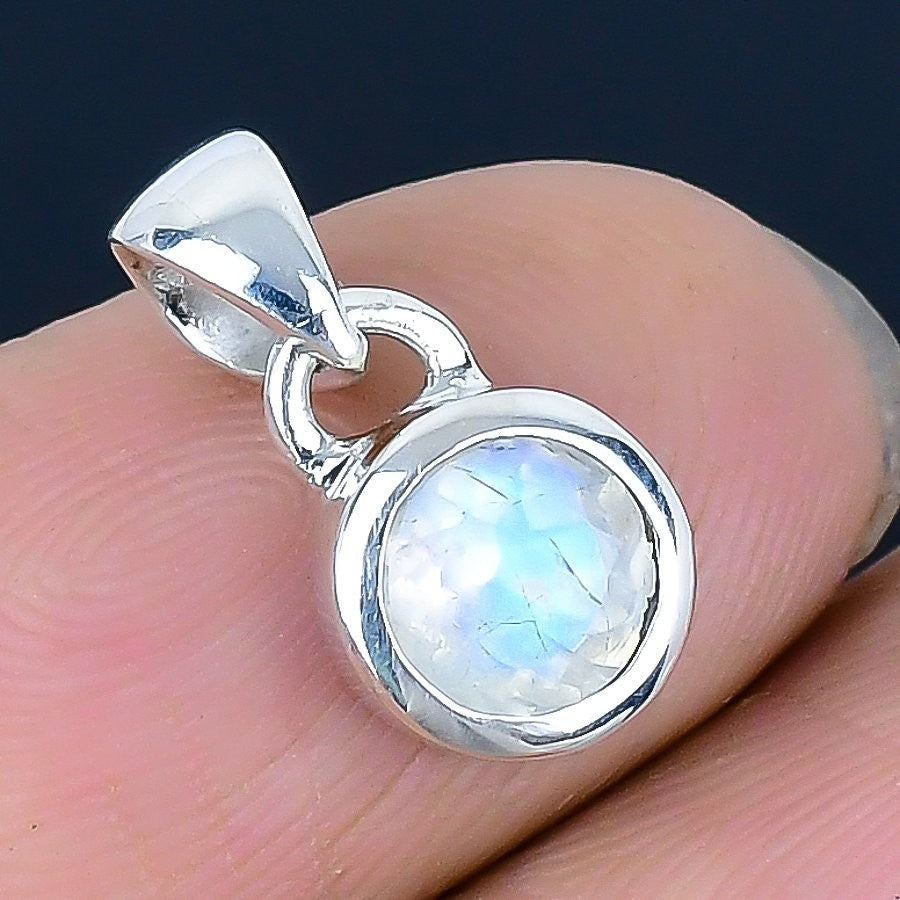Rainbow Moonstone Faceted Stone Sterling Silver Daughter Gift Pendant Jewelry