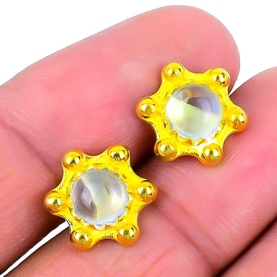 Rainbow Moonstone Gemstone 925 Silver Gold Vermeil Wedding Stud Earrings Jewelry
