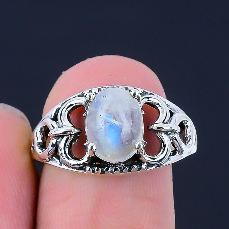 Rainbow Moonstone Gemstone 925 Silver Statement Trendy Daughter Gift Ring US 7