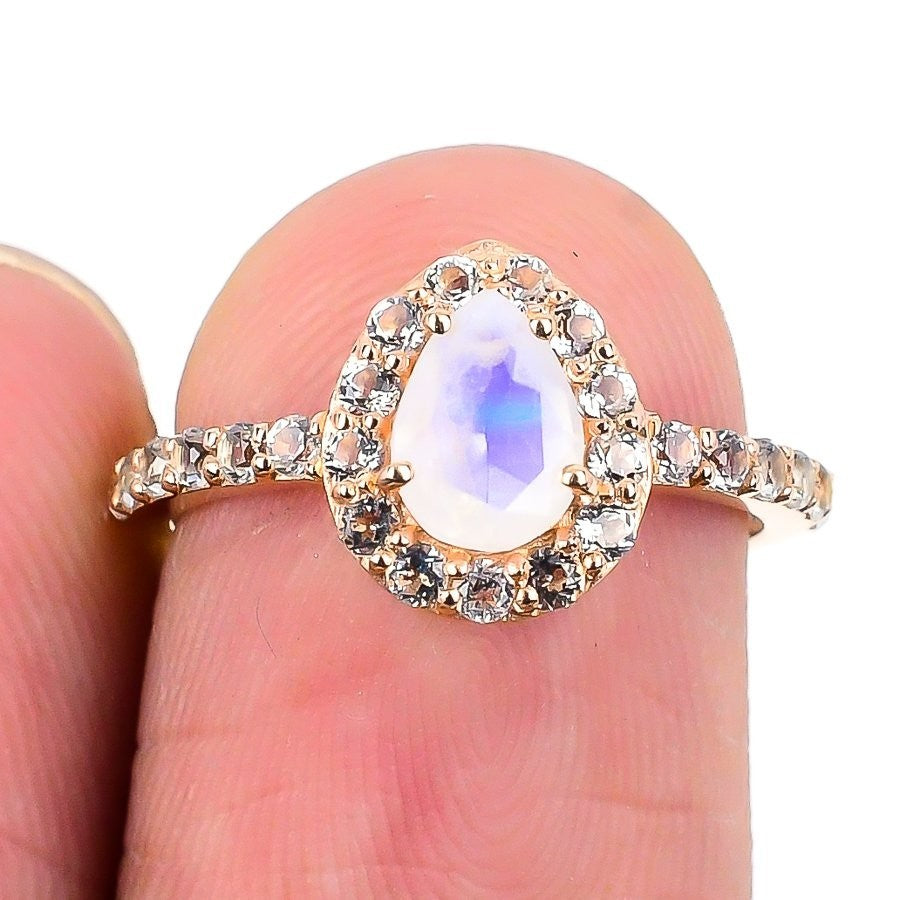 Rainbow Moonstone Gemstone 925 Solid Silver New Statement Birthday Ring Size 6