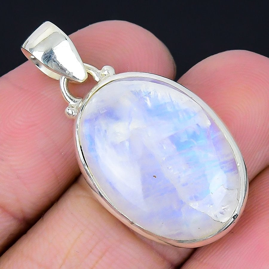 Rainbow Moonstone Gemstone 925 Sterling Silver Anniversary Boho Pendant Jewelry