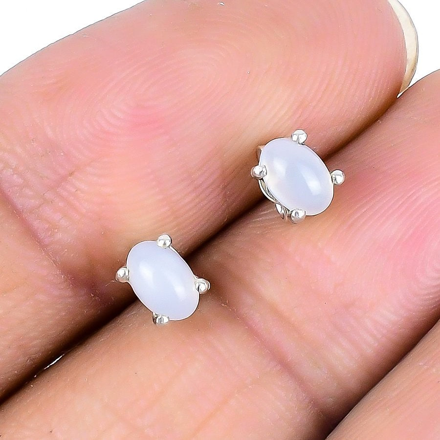 Rainbow Moonstone Gemstone Birthday Stud Unique Earrings Jewelry Sterling Silver