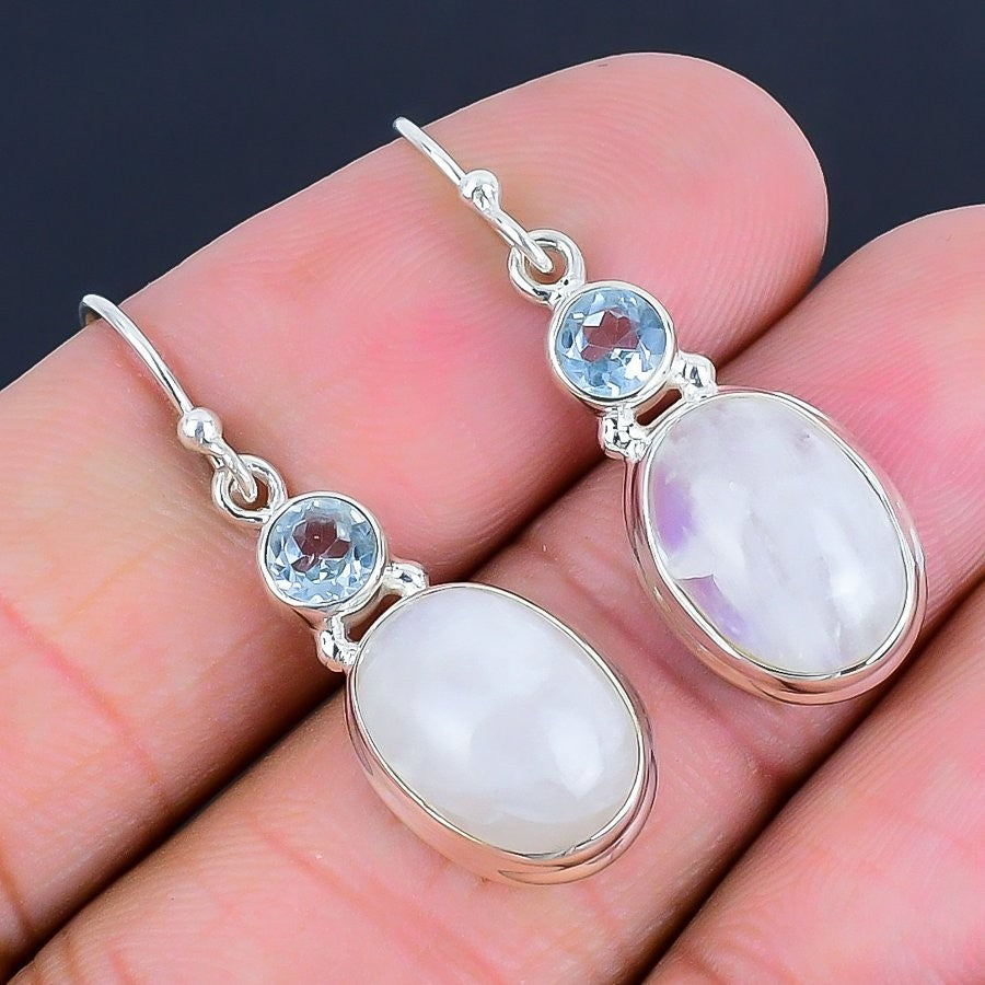 Rainbow Moonstone Gemstone Dangle Drop Earrings Jewelry Solid Sterling Silver