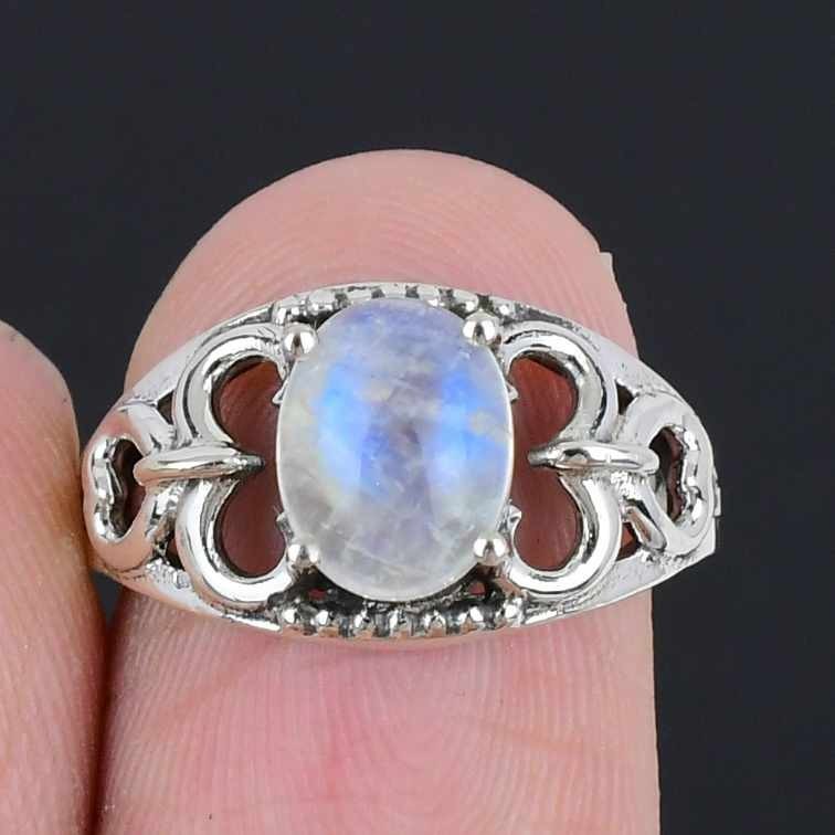 Rainbow Moonstone Gemstone Elegant Cluster Ring Jewelry Size 6 925 Solid Silver