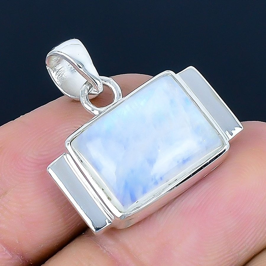 Rainbow Moonstone Gemstone Ethnic Unique Daughters Day Pendant 925 Solid Silver